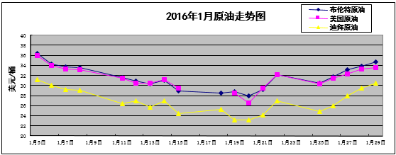 2016年1月世界各地油市價格受供應過剩和需求疲弱等利空因素的影響,延續下跌的趨勢,在跌破30美元 桶后繼續下探,并在1月20日達到了階段性最低點。