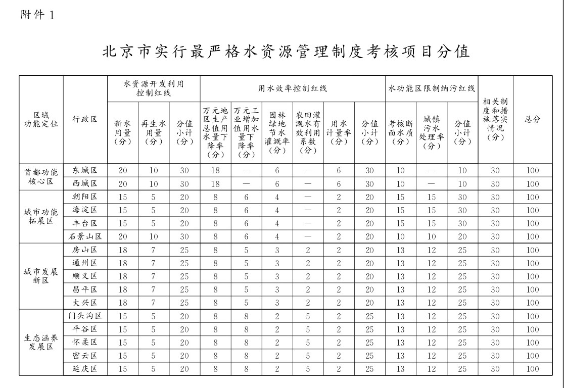 北京市人民政府辦公廳關于印發《北京市實行最嚴格水資源管理制度考核辦法》的通知